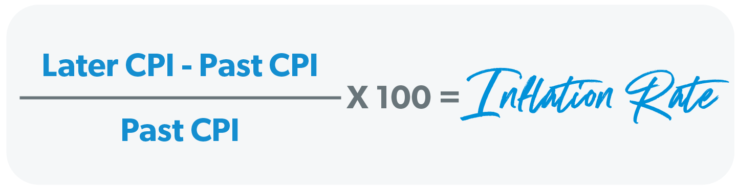 Now that we’ve covered economics, it’s time for the second class of the day—math. For this one, we’ve got to go back to the Consumer Price Index and use a formula (ugh). But don’t let that scare you. It’ll all make sense in a second. Ready? Let’s do some math: