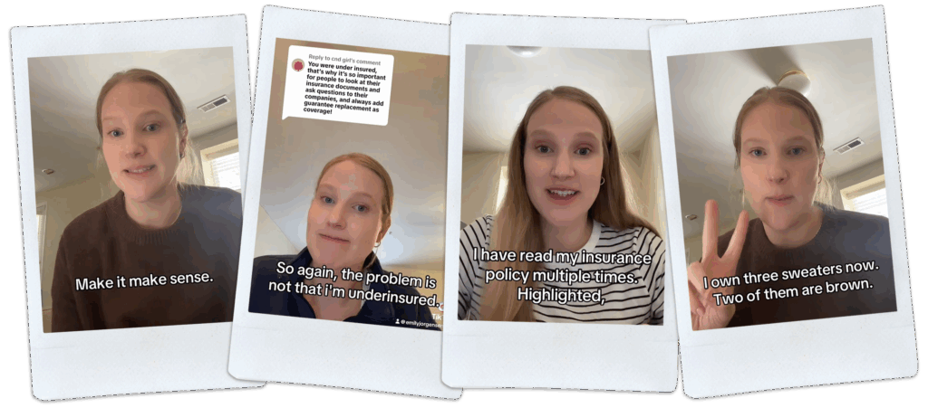 “When you look at the policy, it feels like the coverage is there,” she says. “But then you get a number that doesn’t reflect what it actually costs to rebuild, and it just doesn’t make sense.